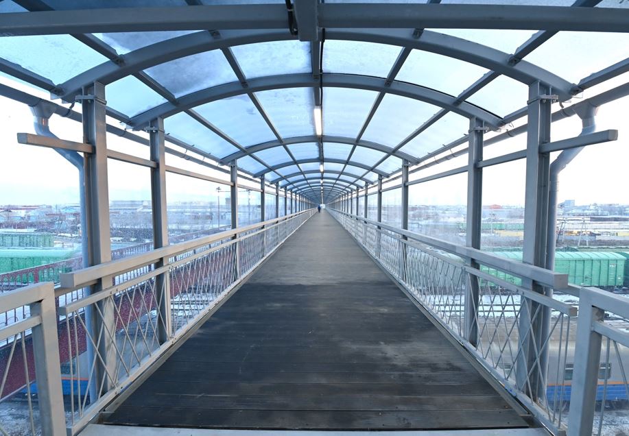 Кентте теміржол үстінен өтетін аспалы көпір пайдалануға берілді