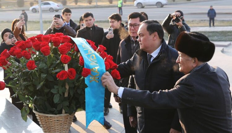 Қазақстан Республикасы Тәуелсіздігінің 34 жылдығына орай Тараз қаласындағы «Тәуелсіздік» монументіне гүл шоқтарын қою рәсімі өтті.